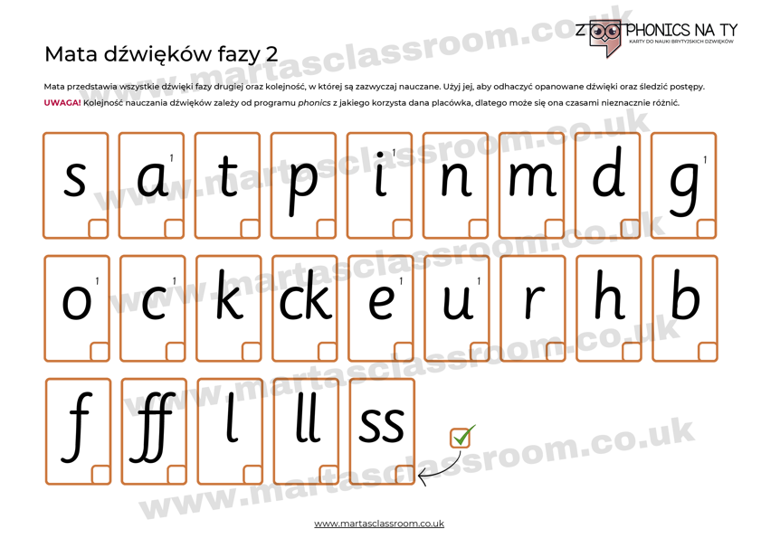 - Matę ze wszystkimi dźwiękami fazy 2 w kolejności zgodnej z programem